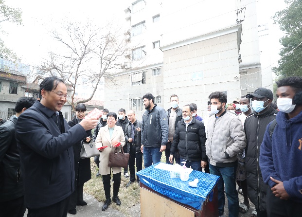来到学生宿舍,高山一行看望慰问了在校国际学生,并询问“你们是哪里人呀?”“在学校感觉还好吗?”,国际学生用中文一一回答并表示“谢谢老师!我们在学校挺好的!”“Happy New Year”“Thank you”,高山一边递上给学生们准备的春节慰问品,一边与学生们亲切交谈,并叮嘱相关工作人员落实保障好在校学生的吃住行以及身心安全。