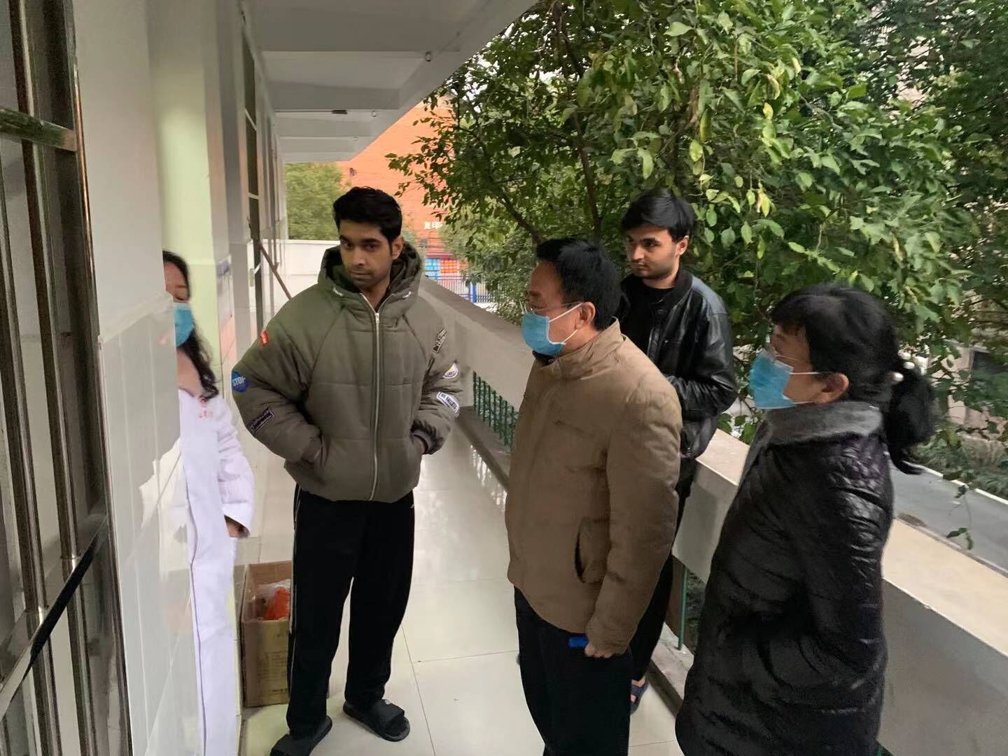 2020年1月28日下午,我校党委委员、副校长陈国民在国际学院院长李玉琼陪同下,到留学生宿舍看望了春节期间留校的国际学生,了解我校国际学生新型冠状病毒感染的肺炎疫情防控情况。陈国民副校长对国际学院前期所做的疫情防控工作进行了肯定,并要求国际学院要认真贯彻落学校对新型冠状病毒感染的肺炎疫情防控工作的重要部署,进一步细化国际学院疫情防控方案;值班老师每天了解国际学生日常情况,做到“日报告、零报告”;进一步抓好寒假留校国际学生的安全防范意识教育,引导国际学生合理安排假期学习与生活,少外出、勤洗手、戴口罩,养成良好的公共卫生行为规范;加强留学生宿舍的消毒及通风等防控工作,进一步做好留学生宿舍的环境卫生工作;积极做好国际学生返校准备工作。
