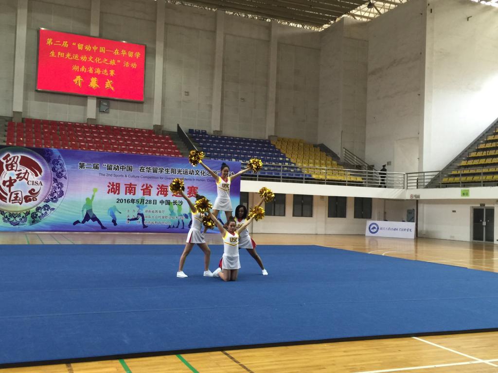 May 28 witnesses the striking and shining performance of USC international students in the audition of Hunan competition area of the 2ndSunshine Sports Culture Tour for International Students in China, which is sponsored by the State Ministry of Education, hosted by Chinese National Collegiate Athletic Association and undertaken by Hunan Ministry of Education and Hunan Mass Media Vocational Technical College.