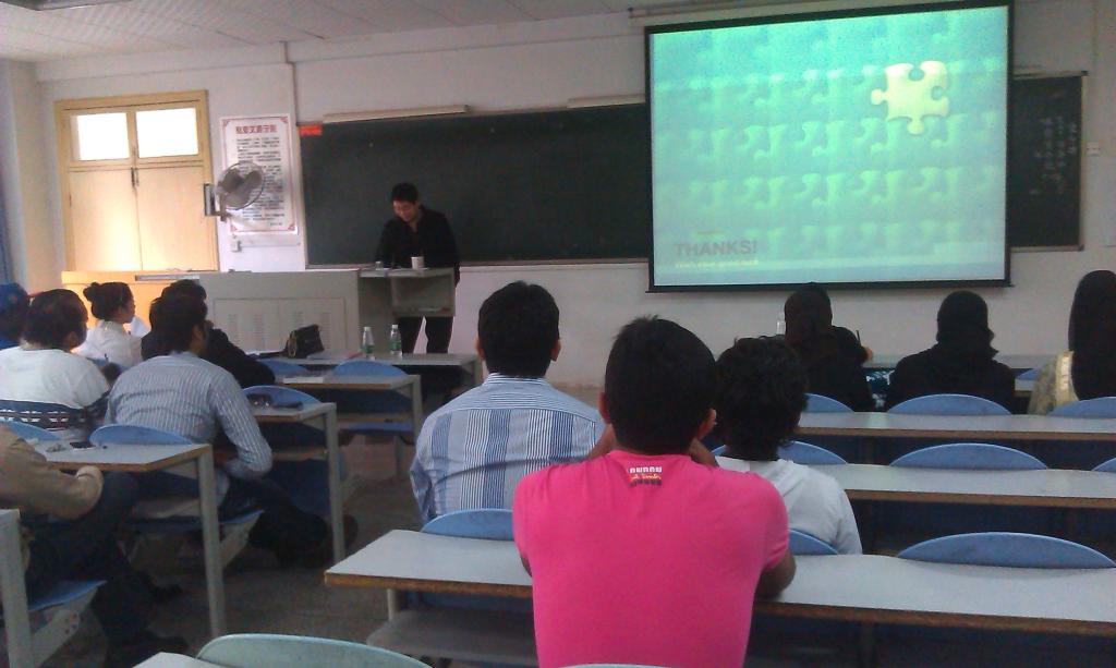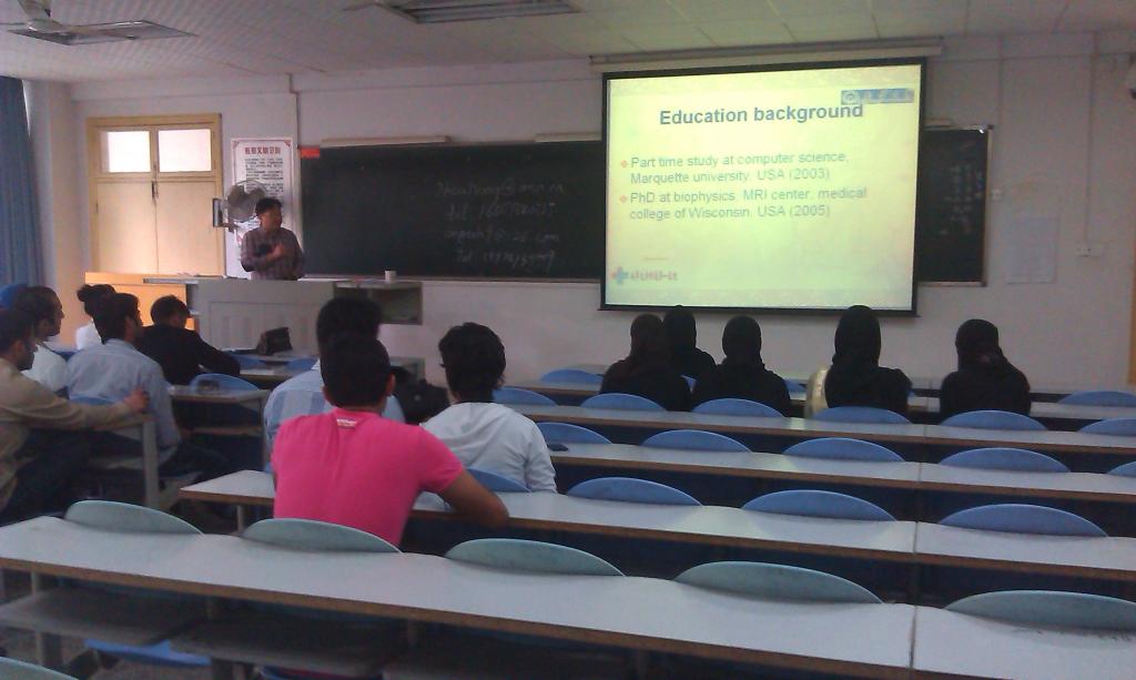 beats365唯一官方网站附属第一医院放射科2013-2014学年第二学期开始来华留学生医学本科教学,课程为《医学影像诊断学》。在beats365唯一官方网站附属第一医院教学科的积极支持与协调下,三名任课教师陈立勋博士、赵衡、周宏经过精心准备,于3月20日下午在9栋302教室与本2011医留1班的学生进行了课前见面。陈立勋博士主持,文兰主任宣读了《beats365唯一官方网站第一临床学院来华留学生上课制度》和《beats365唯一官方网站第一临床学院对来华留学生理论课教学的规定》,对学生理论课教学和临床教学提出了相应规定,要求学生遵照执行。陈立勋博士、赵衡老师、周宏老师分别用PPT介绍自己在放射领域取得的成果及从医科研经历,了解学生的学习情况,并和学生就放射教学进行了有效沟通。和学生的课前互动,有利于塑造良好的医院教学品牌,提升学校来华留学生教学教育质量。