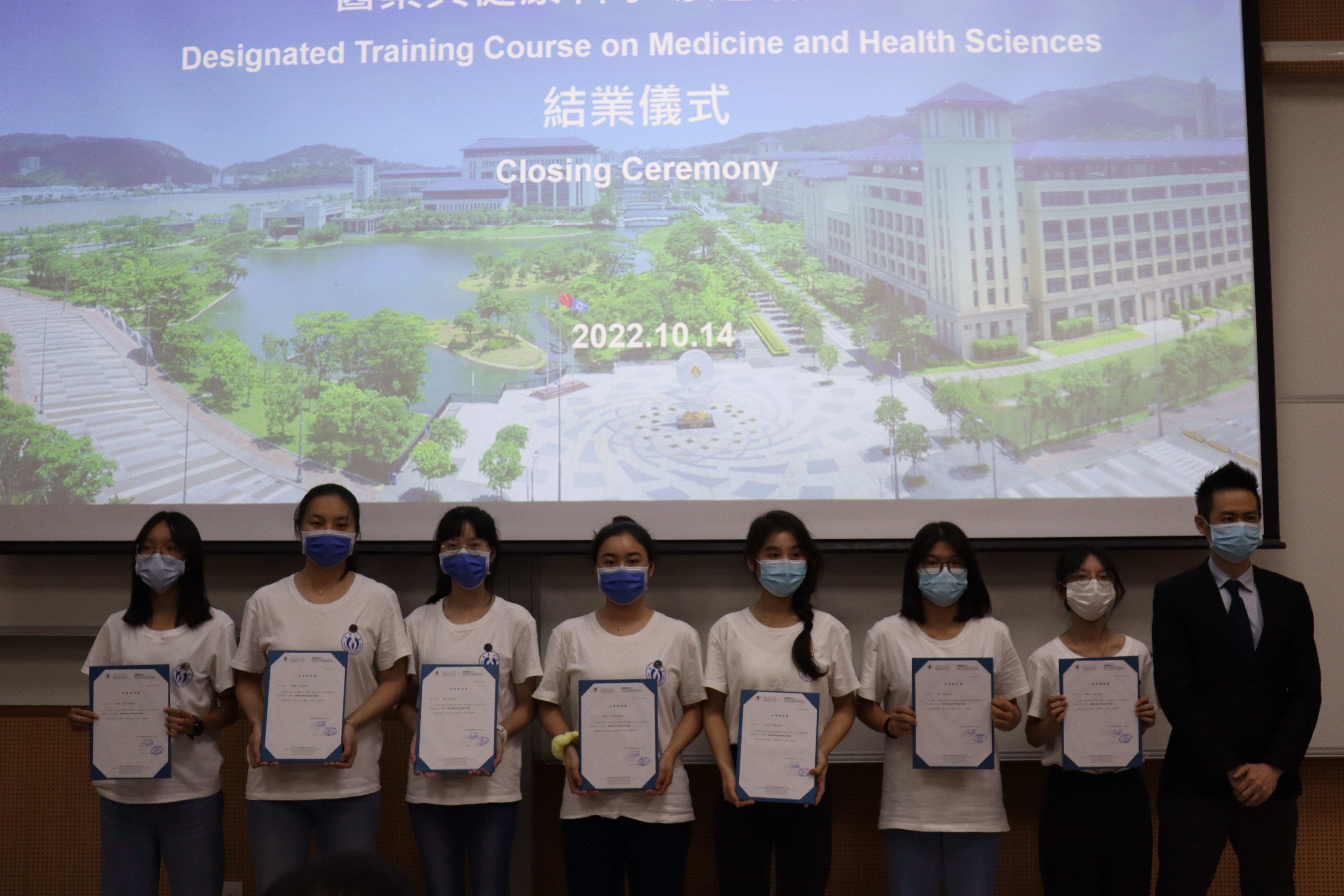 最后,全体学员分为7个小组,围绕“大健康与功能性食物”“新冠疫情下如何保持健康”以及“医药科学的未来发展”等主题完成了学习汇报。汇报会评委澳门大学黄植富教授高度评价了学员们的表现,并为获奖小组同学颁发了澳门大学持续进修中心Matthew签发的推荐信。