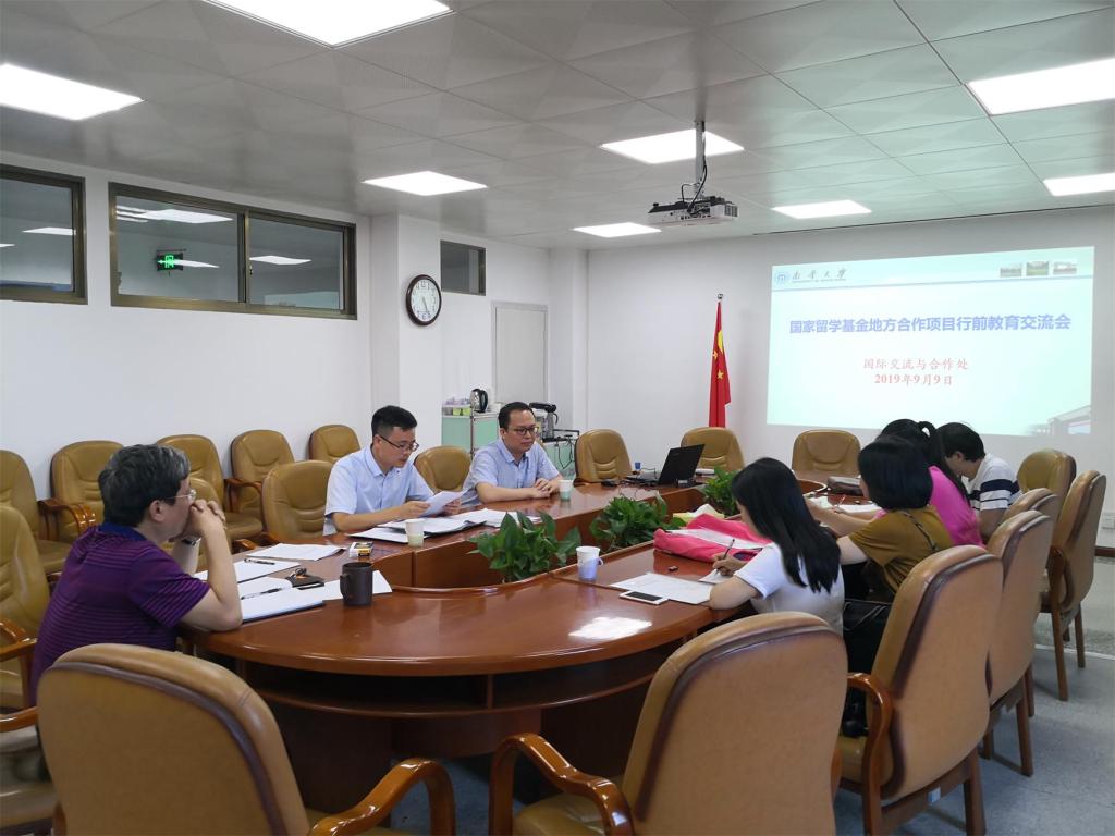 9月9日下午5点,校国际处在红湘校区西苑办公楼3楼会议室召开2019年国家留学基金地方合作项目行前教育交流会。交流会由国际处处长袁春阳主持。项目获得教师、已回国老师代表王明华和国际处工作人员出席交流会。