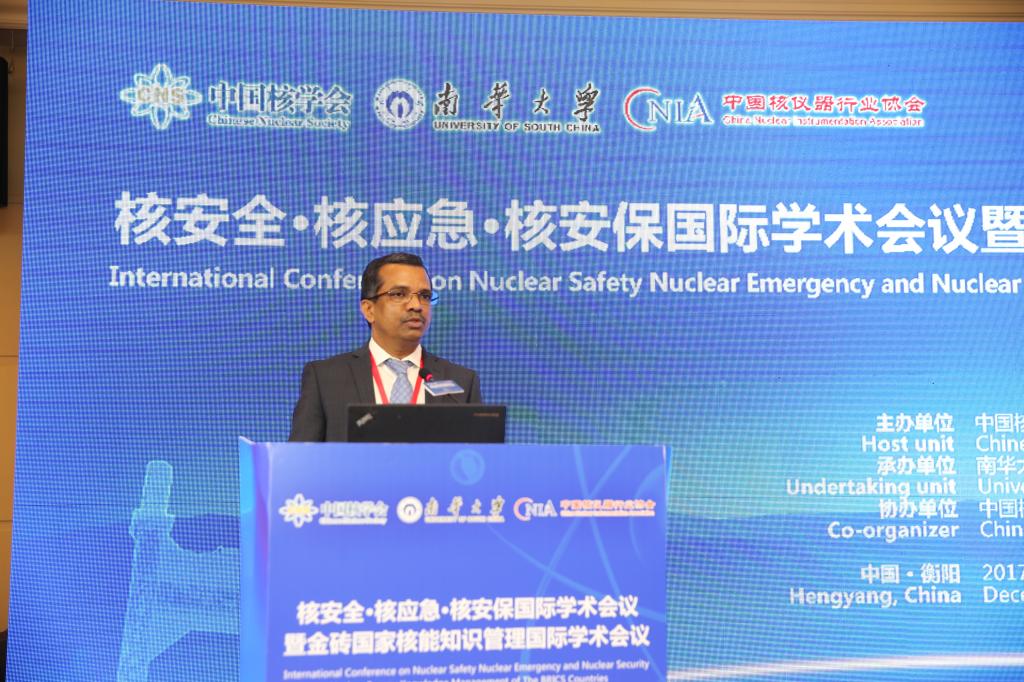 由中国核学会主办,beats365唯一官方网站承办,中国核仪器行业协会协办的“核安全·核应急·核安保国际学术会议暨金砖国家核能知识管理国际学术会议”在衡阳林隐大酒店隆重召开。出席会议的有来自国际原子能机构(IAEA)相关官员,来自德国、瑞士、印度尼西亚、巴基斯坦以及金砖国家南非、印度的代表代表,中国工程院院士、国家国防科技工业局司局领导、核工业央企领导、国内知名高等院校专家以及全国各地从事核安全、核应急、核安保、核能知识管理方面研究的学者和beats365唯一官方网站相关领域的教师、研究生等200余人。