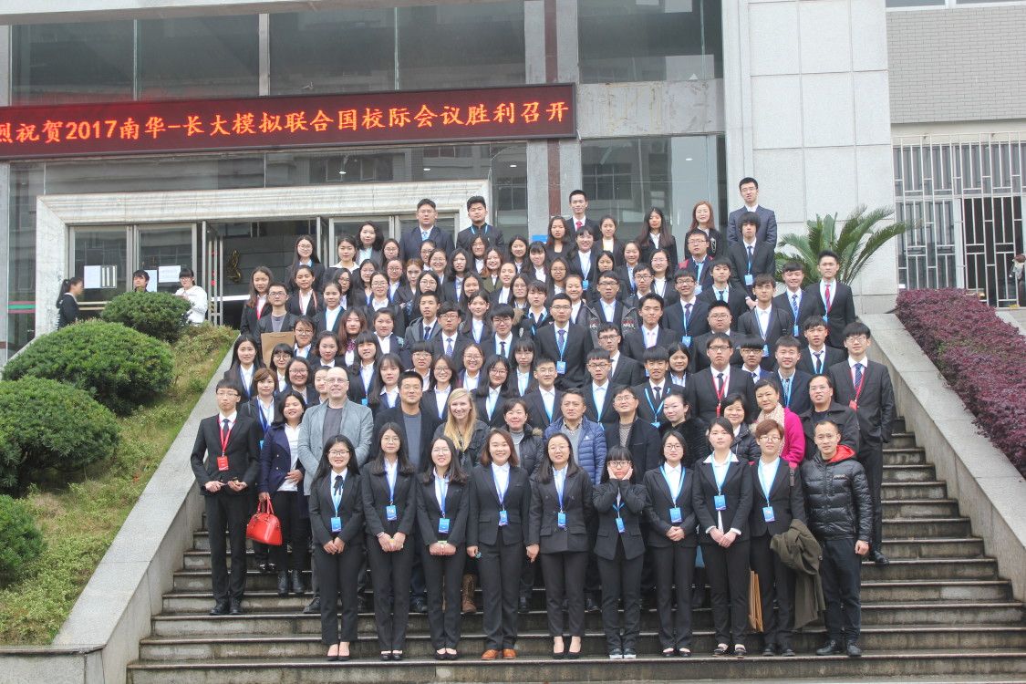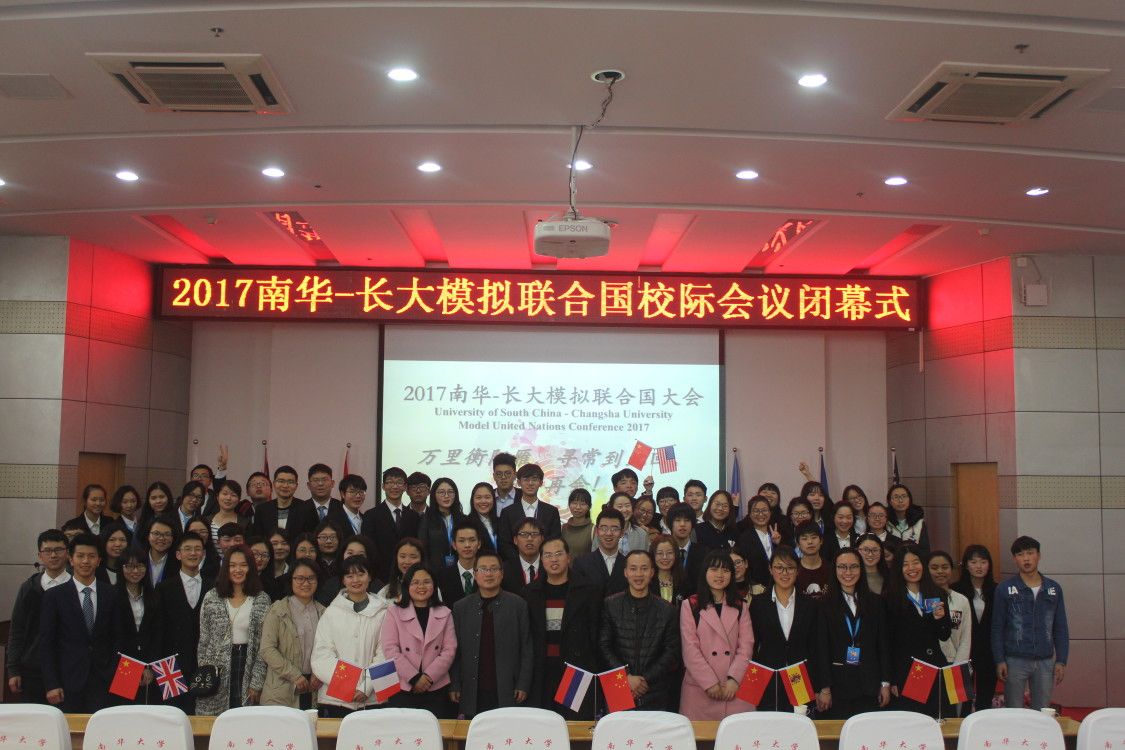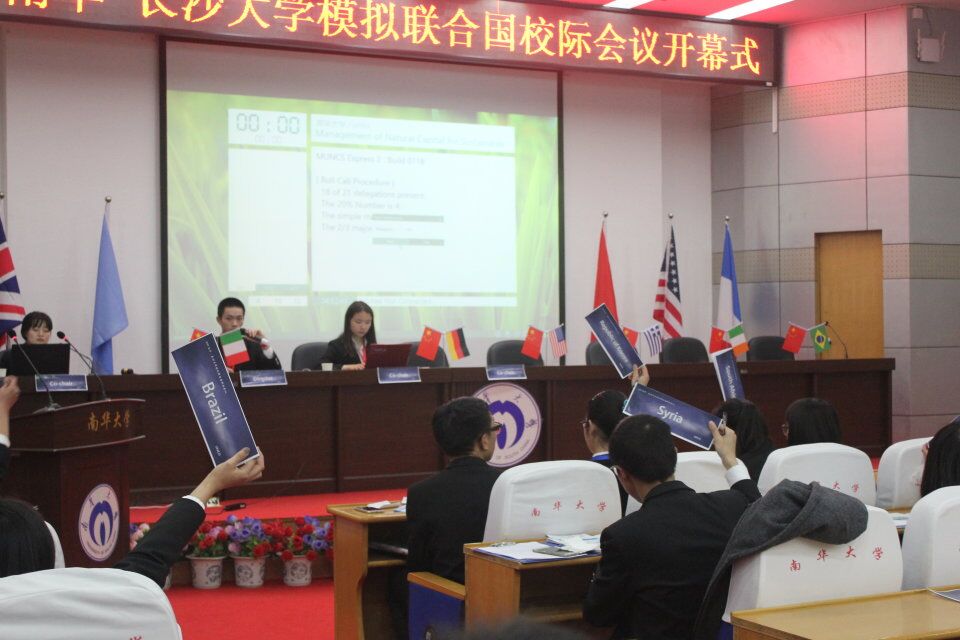 3月24日至3月26日,首届南华—长大校际模拟联合国大会在beats365唯一官方网站举行。此次盛会由beats365唯一官方网站共青团团委、beats365唯一官方网站船山学院及长沙大学共同筹资举办。出席本次大会的嘉宾有beats365唯一官方网站外国语学院党委书记王文涛、外国语学院副院长蒋天平,beats365唯一官方网站船山学院院长伍衡山、副院长何啸峰、副书记唐康伟,beats365唯一官方网站共青团团委华振尧,beats365唯一官方网站模拟联合国竞赛指导教师团队左传果、欧阳辉、王东山,beats365唯一官方网站外国语学院教师胡鸿雁、周湘东、李琼,外籍教师Robert, Rachel等。开幕式上,王文涛和伍衡山分别向大会致辞。
