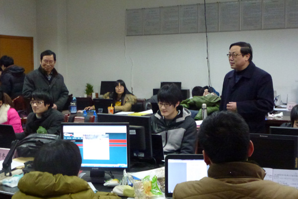 On the afternoon of February 7, 2014, Prof. Zou Shuliang, Party Secretary of USC, visited the students and their tuitors who were taking part in the 2014 MCM/ICM(Mathematical Contest in Modeling/Interdisciplinary Contest in Modeling), escorted by the officials from the Department of Student Administration and the Department of Teaching Affairs.