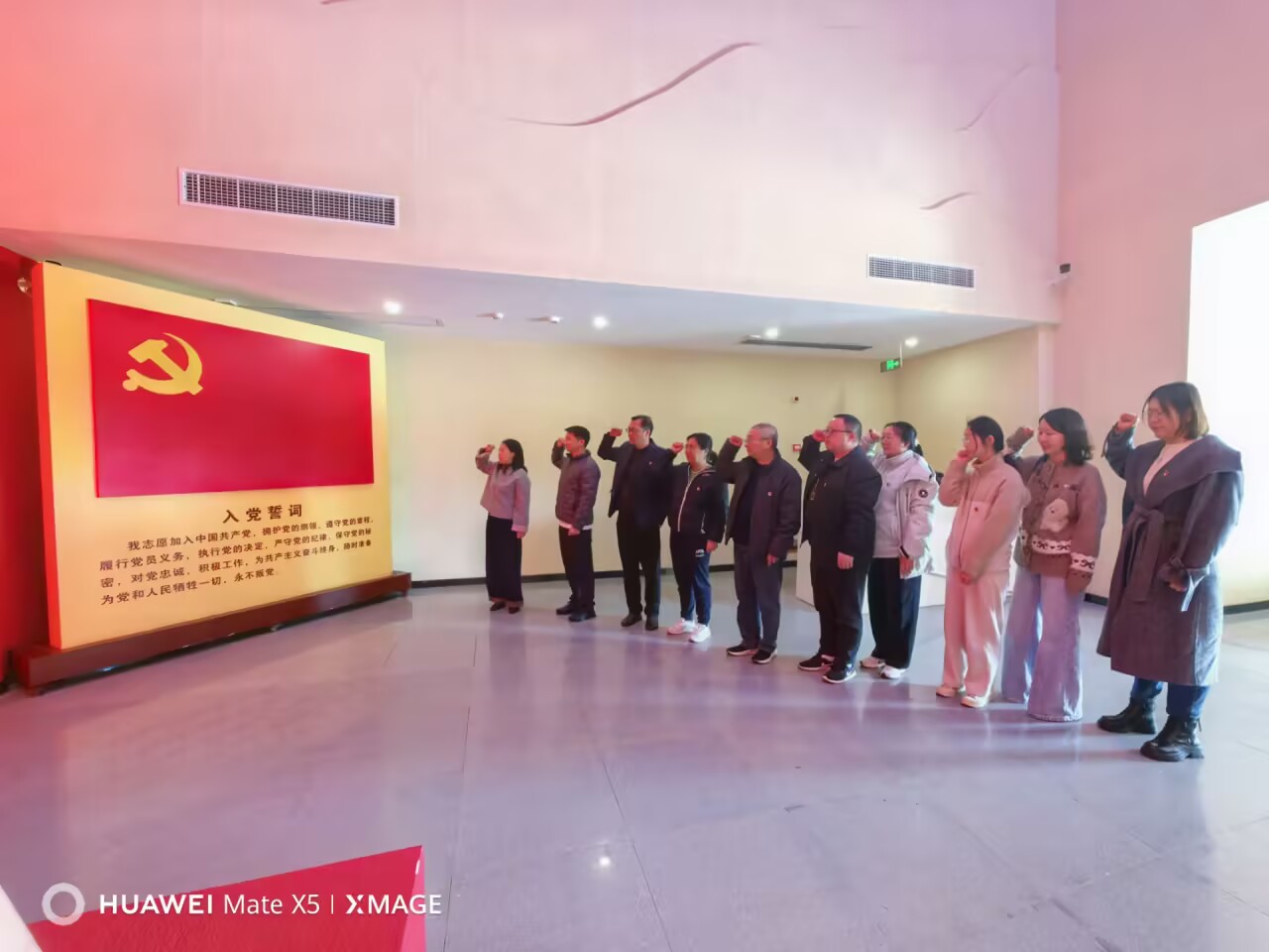参观结束后,全体党员在鲜红的党旗下列队肃立,由支部书记傅华丽领誓,重温入党誓词。“我志愿加入中国共产党……”铿锵有力的宣誓声回荡在展厅中,表达了同志们对初心的坚守和对使命的担当。
