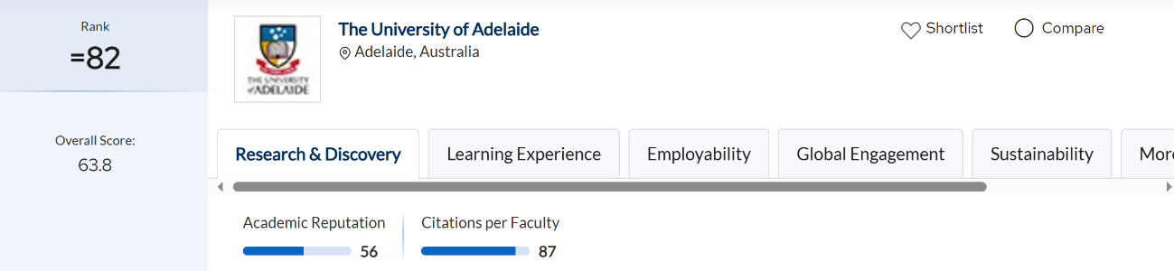 (原)阿德莱德大学在2025年QS世界大学排名中位列第82位,稳占世界前百强的“高含金量”席位!
