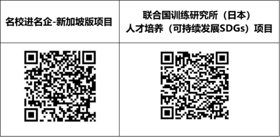 为培养具有国际视野的创新型高素质人才,推动国内高校相关专业人才培养体系,上海赴外文化交流中心和海外各高校/企业/国际组织等共同推出“名校进名企项目-新加坡版项目、联合国训练研究所(日本)人才培养(可持续发展SDGs)项目”,为参与者提供更加多元化及更具国际竞争力的教育和实践机会,普适于任何专业年级。